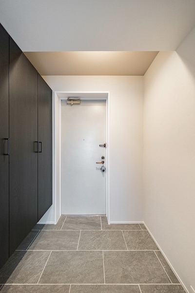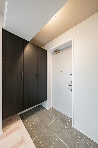 ブラック×ホワイトデザインのスタイリッシュな玄関がお出迎えしてくれました♩トールサイズのシューズボックスを備え、ご家族皆さんの靴もスッキリ収まります◎収納部は可動式のため、お好みの高さに調整できますよ。