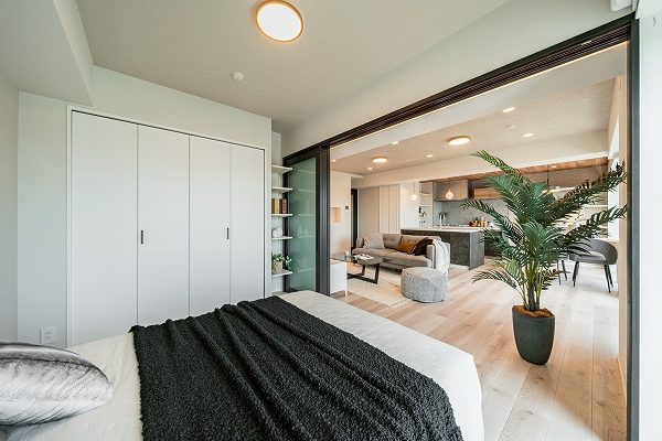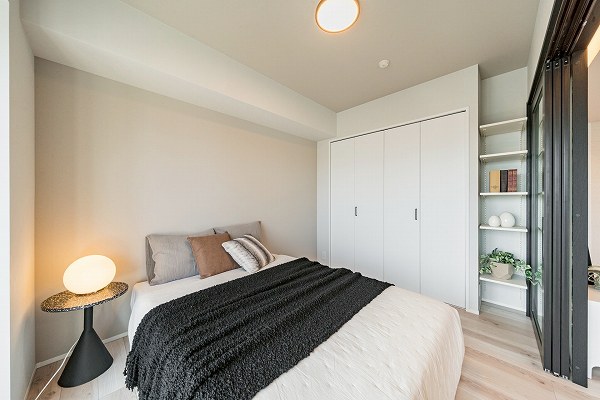 リビング横には約5.38帖の洋室をご用意。スライドドアでリビングとゆるやかにつながり、開放感のある空間としても活用できます。クローゼットも備わっており収納力も安心。主寝室としてもおすすめの落ち着いた一室です✦