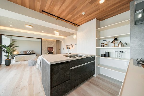 キッチンはⅡ型タイプで、作業スペースがしっかり確保されているのが印象的。料理をしながら会話を楽しんだり、家族で並んで準備をしたりと、キッチンが自然とコミュニケーションの場に✦リビング横の洋室はスライドドア仕様で、開放すればLDKとつながる広がりある空間に。お子様の遊び場やワークスペースとして使うのもオススメ◎
