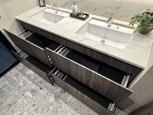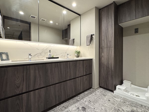 白金タワー_ラグジュアリーな洗面室の写真