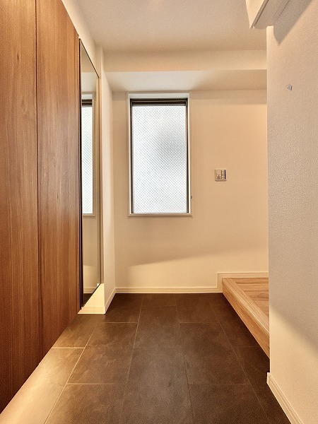 折り上げ天井になっていて、開放的なエントランス。オートロックや管理人室、防犯カメラを備えています。これなら小さなお子さまがいるご家庭でも、安心してお過ごしいただけますね。荷物の受け取りに便利な宅配ボックスも完備。