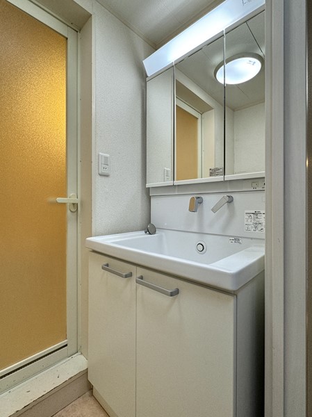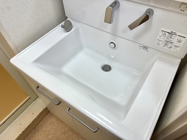 サニタリルームには、洗面台・洗濯機置き場・バスルームがまとまっています。余計な設計がなく、お掃除もスムーズにできそう♪大きな洗面ボウルが採用されていて、使い勝手も良好です。