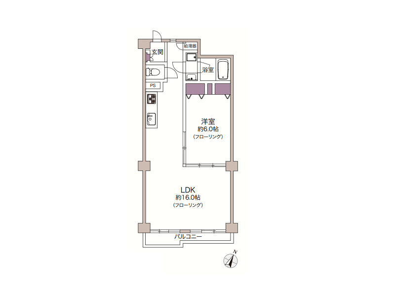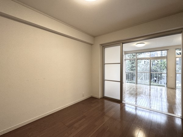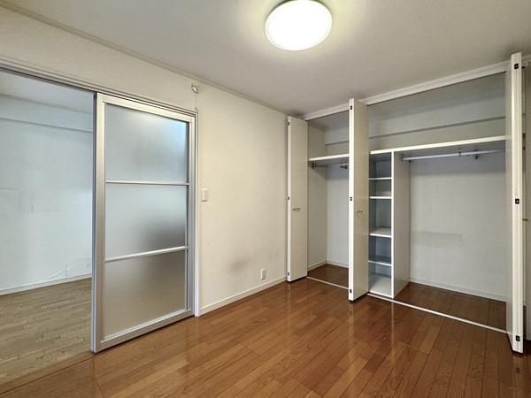 お隣の洋室は約6.5帖の広さがあり、陽当たり良好。スライド扉で仕切られているので、開け放つことでより広々と感じられそう。そのままバルコニーへも出られます。手前にはクローゼットも備わっています。