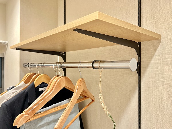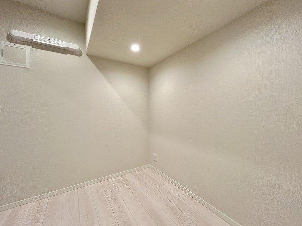 約3.7帖と小さめの洋室ですが、棚板付きの可動式クローゼット完備で収納には困りません。リビングにベッドを置き寝室と兼用する場合、こちらの洋室を丸ごと収納スペースとして活用すれば、生活空間にゆとりを持たせることができますよ。