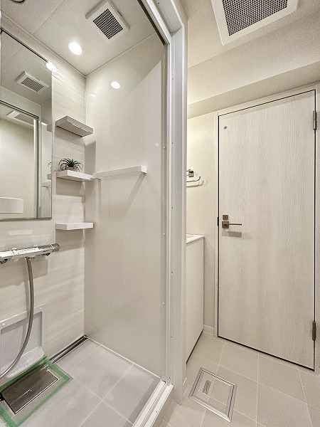 新規リノベーションにより交換されたシャワールームは、床や壁もピカピカで清潔感たっぷり。湯船に浸かる時間が少ない方や、掃除の手間を減らしたい方におすすめの設備です✧