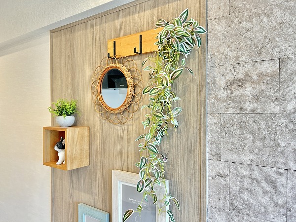 メインルームにある木目調の壁はマグネット対応で、写真や小物を直接飾ることが可能。思い出の写真や雑貨を自由にディスプレイでき、自分だけの空間作りを楽しめます。遊び心を加えながら暮らしに個性をプラスできるのが魅力です♡