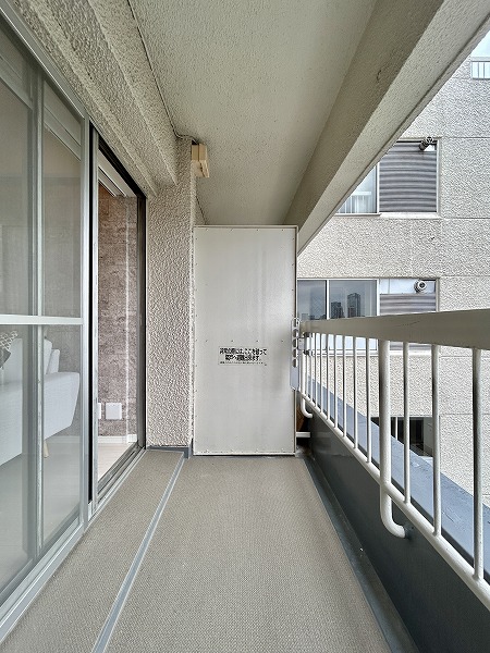 バルコニーの外には静かな住宅街の景色が広がります。視界が開けており、爽やかな風を感じながら洗濯物を干すことも可能。風通しが良く、落ち着いた暮らしをサポートしてくれるアウトドア空間です。