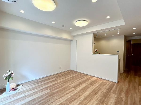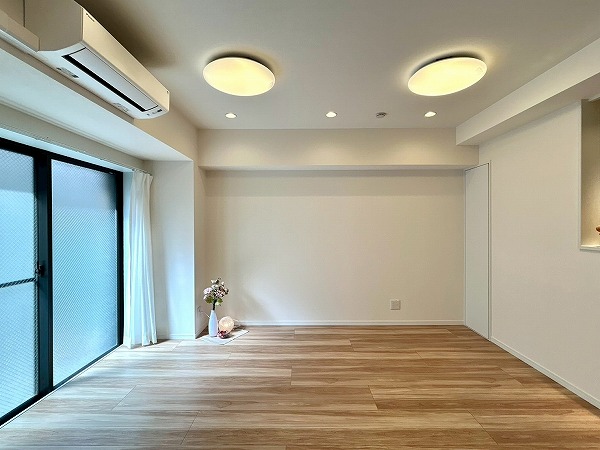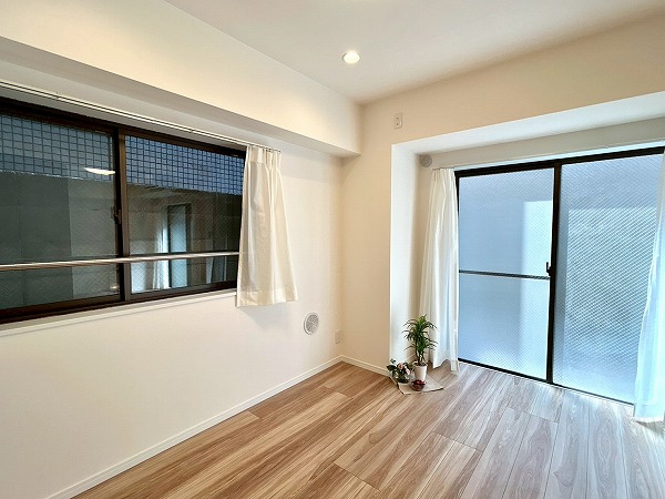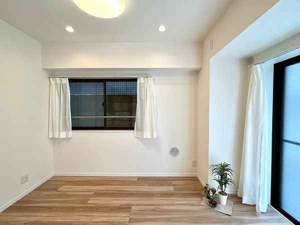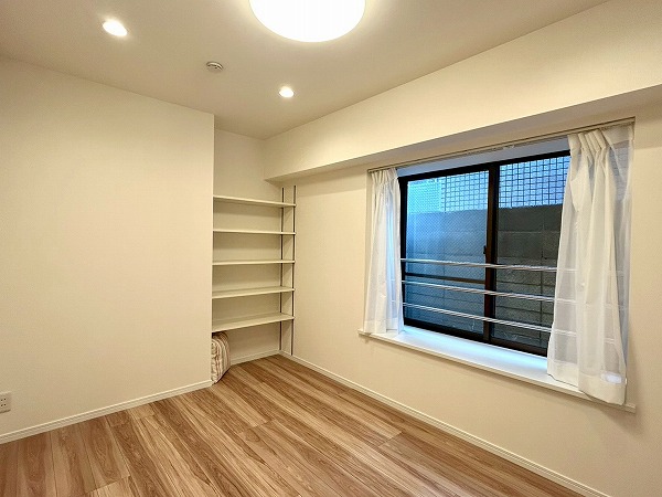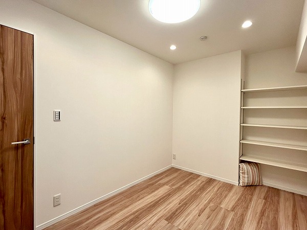 約5.1帖の洋室はLDKに隣接しており、ドアを開けると開放感のある空間が広がります。LDKの延長として利用したり、仕切ってワークスペースや書斎として活用することもでき、ライフスタイルに合わせて自由に使えるお部屋です。