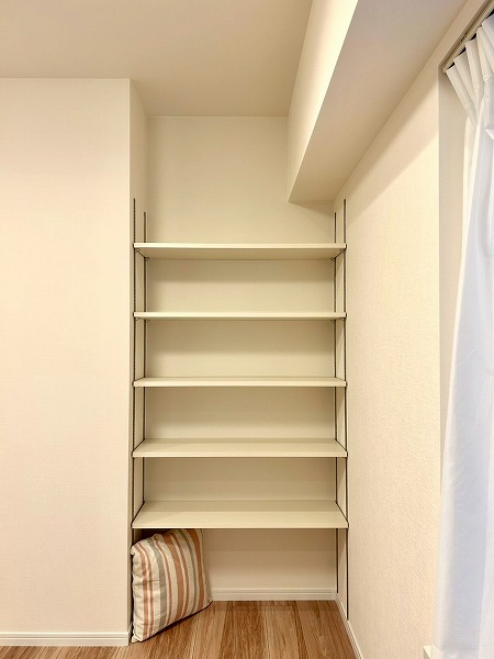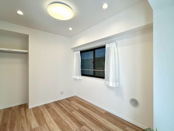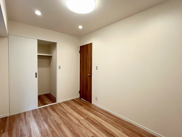 約5.2帖の洋室は、シングルベッドが2つ並べられる広さのため、寝室としての利用にぴったりです。ウォークインクローゼットが備わっており、毎日の服選びや収納も快適に行えますよ。
