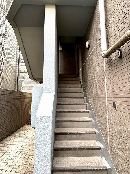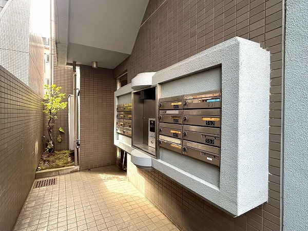アプローチにはアーチ状のゲートが設けられており、落ち着いたタイル張りの外観と相まって上品な雰囲気を演出しています。植栽も配置されており、街中にありながらもさりげない緑を感じられる空間となっています。
