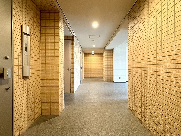 エントランスは天井が高く広々としており開放的な空間です。管理人室とオートロックがマンションを守ってくれていました。防犯カメラも設置されており防犯面は万全ですね◎