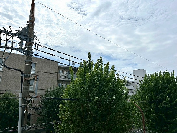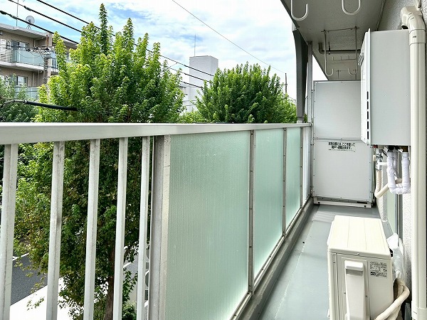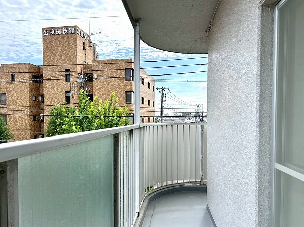 南東向きのコーナーバルコニーは陽当たりと風通しが良く、洗濯物もたっぷり干せる広さがあります。周囲の緑を感じながらゆったり過ごせる空間で、チェアを置いて朝のコーヒータイムやリラックス時間に最適ですよ☀