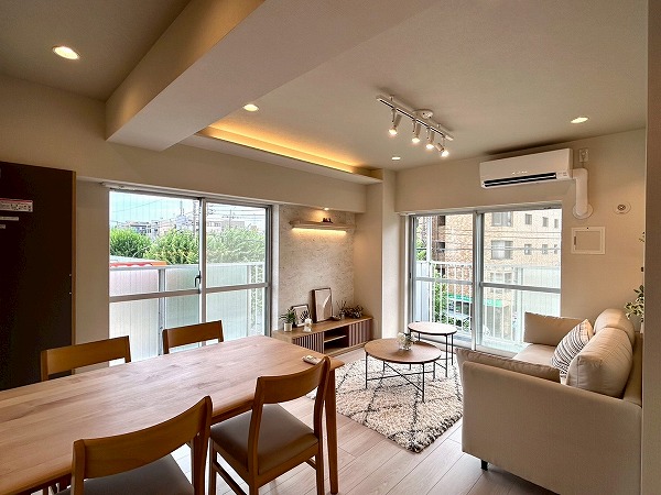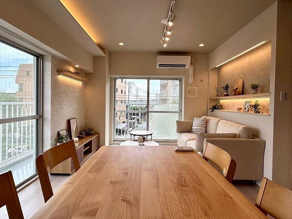 西永福駅から徒歩6分の立地に佇む『メゾン西永福』。井の頭線沿線でアクセス良好なこちらのマンションは、緑が豊かで穏やかな街並みが魅力のエリアに位置しています◎今回ご紹介するのは3階部分、専有面積67.85㎡・3LDKのお部屋。お子様のいるご家庭でもゆったりした暮らしが叶います。また、南東向きの角住戸なので、たっぷりの日差しと心地よい風を感じることも・・・♡室内はリノベーションが施され、木目の温もりを感じられる爽やかなデザインにリニューアル!天井には間接照明が設置され、柔らかな光が空間全体を包み込み夜もリラックスできる雰囲気を演出。マルチクローゼットやオープンクローゼットなど、機能性とデザイン性を兼ね備えた収納も完備しており、生活空間をすっきり整えることができます。さらにお洒落な家具付き物件のため、入居後すぐに快適な生活をスタート可能です。ぜひ一度、現地でその快適さと魅力をご体感ください♪ ライター:hana【25K17】