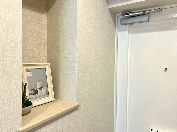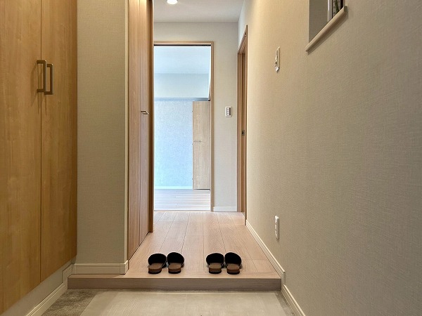 アプローチは2箇所用意されており、居住ごとに使い分けが可能。これにより混雑を避けてスムーズに出入りできるのが嬉しいポイント◎また、階段前には屋根が設置されているため、雨の日の雨具の準備に余裕が持てますよ。