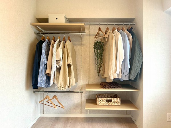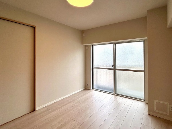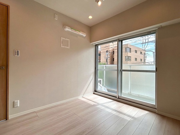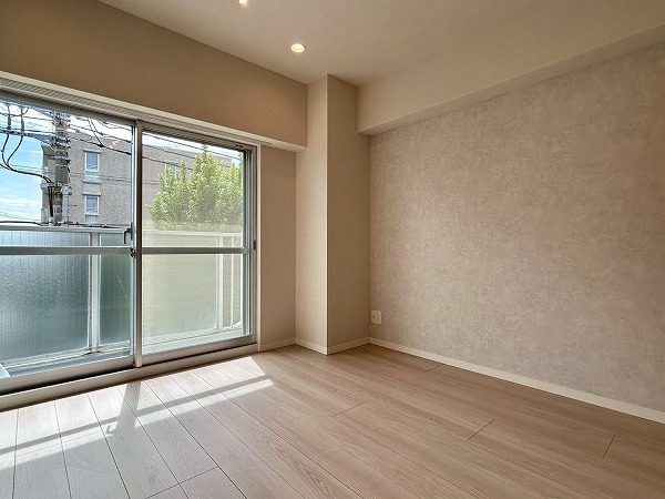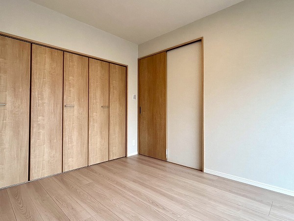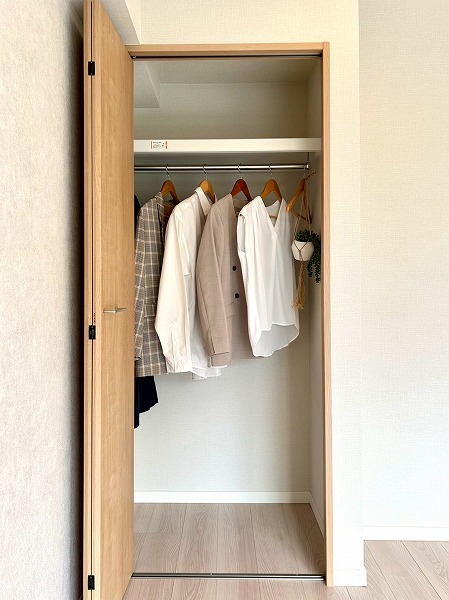 こちらの洋室は約5.4帖。ややコンパクトながら大きな窓のおかげで明るく開放的に感じられます。オープンクローゼットが完備され、お荷物の多い方でも安心。ただ収納するだけでなく飾るようにお気に入りの衣類などを掛け、見せる収納として活用してみてはいかがでしょうか✧