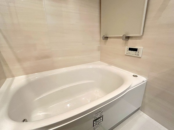ベージュ基調のバスルームは温かみのある落ち着いた空間。追い焚き機能と浴室乾燥機を完備しており、いつでも快適な温度で入浴可能。肩楽湯やジェットバスも備わっているので、日々の疲れを癒す贅沢なひとときを過ごせます♡