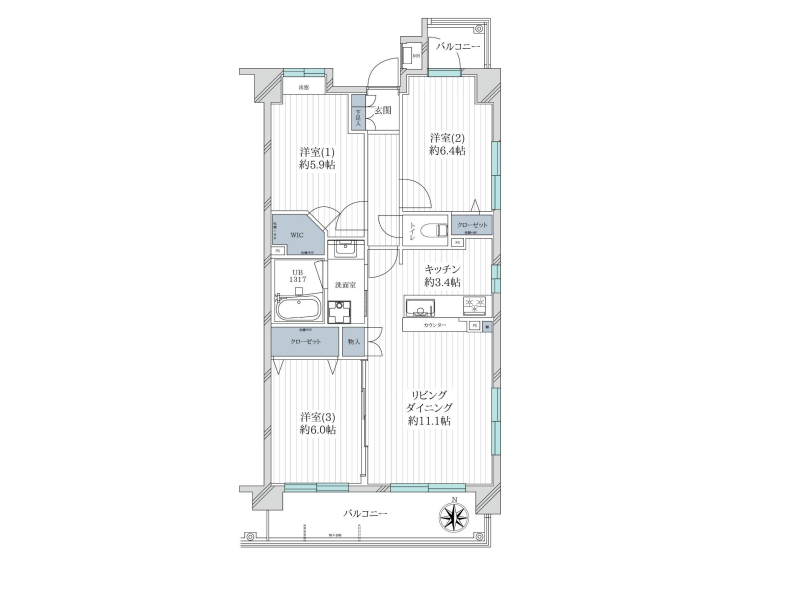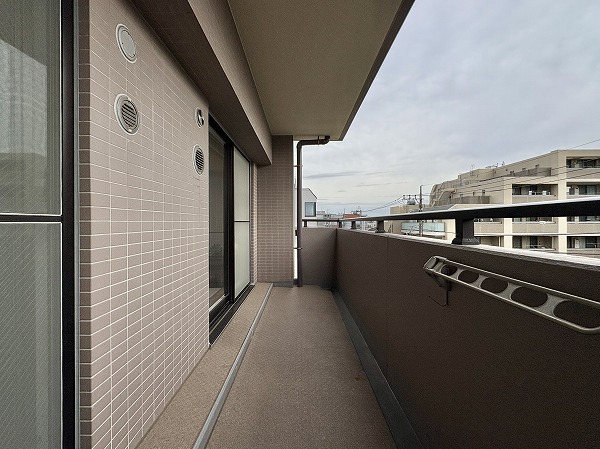 南側に設けられたワイドバルコニーは、リビングから直接アクセス可能。洗濯物をたっぷり干せるゆとりの広さがあります。天気のいい日には、チェアを出してコーヒーを楽しむなど、開放的なひとときを過ごすのもいいですね。