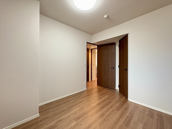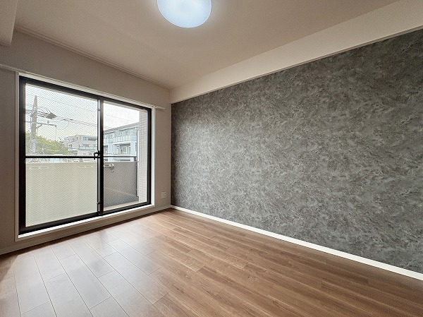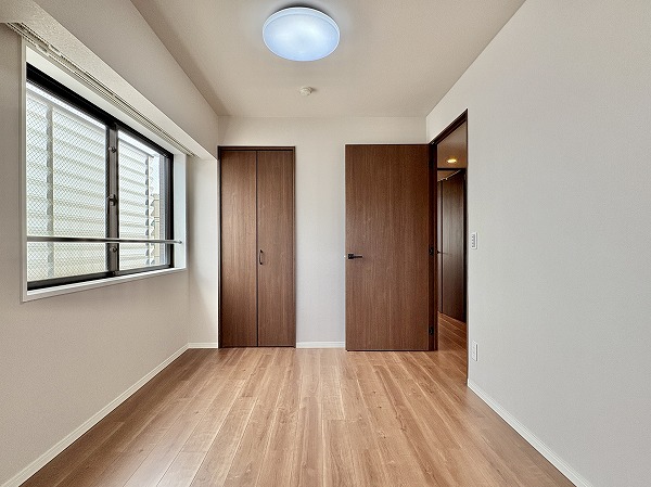 約6.4帖の洋室は、2面採光で明るく快適。ベッドを置いても広さに余裕があり、主寝室としてぴったりです。小さなバルコニーに出て外の空気を吸えば、朝の目覚めも気持ちよく迎えられますよ☀