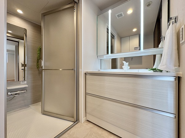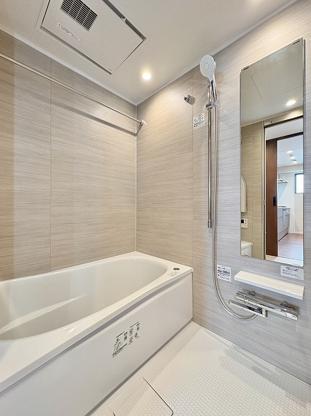 ペールクリーム色のパネルが爽やかに彩るバスルームは、清潔感とやすらぎを感じる空間。追い焚き機能を備え、ワンタッチで心地よい温度に調整可能。半身浴を楽しみながら、ゆったりとしたリラックスタイムを過ごせます♡