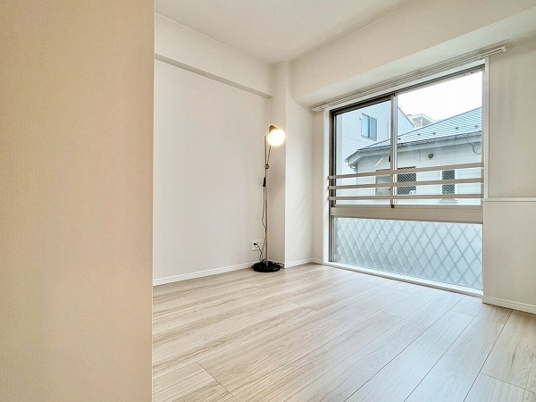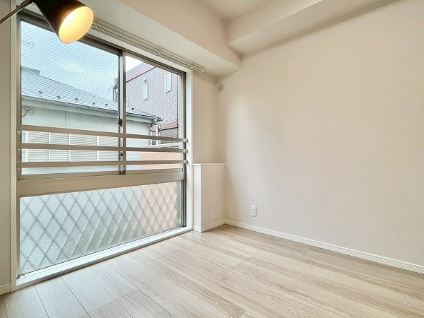 南と西に窓が設けられ、2面採光を実現したメインルームは明るく、穏やかなプライベート空間を演出。ペット可物件につき、わんちゃんやねこちゃんも一緒にくつろげるのがうれしいですね。