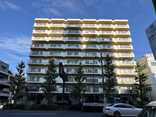戸越銀座商店街の賑わいを抜け、中原街道を渡った先にある『アゼリアハイライズ』。築年数を感じさせないクリーム色の外観は、日差しを受けて柔らかく輝き、堂々とした佇まいが印象的です✧