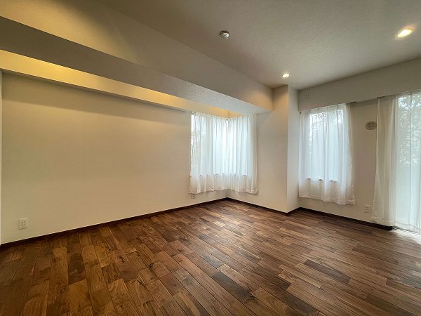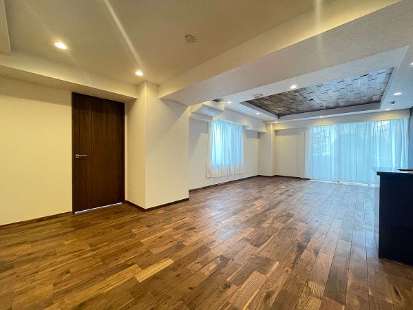 1階住戸ならではの安心感と、専有105㎡超えのスケール感が魅力の2LDK。スケルトンリノベーションにより洗練された空間に生まれ変わり、落ち着きのある上質な住まいが広がります。下階への気遣いなく過ごせるため、ペットとの暮らしにも適しておりゆったりとした時間を満喫できますよ♩