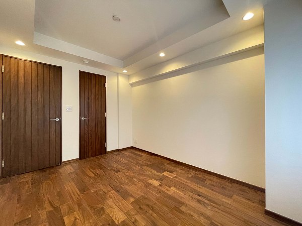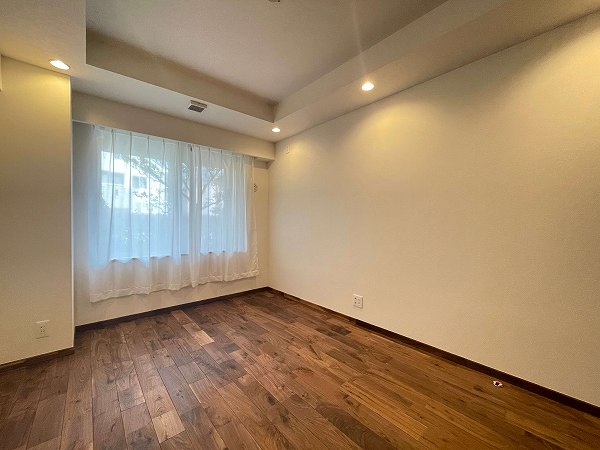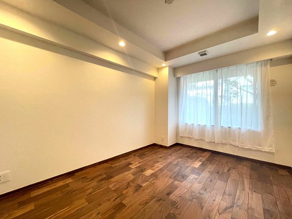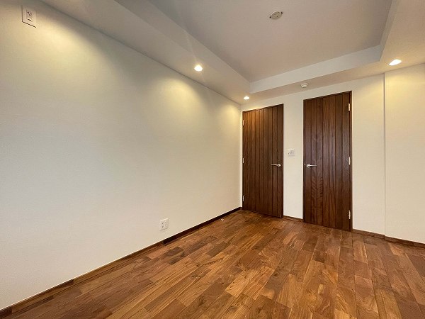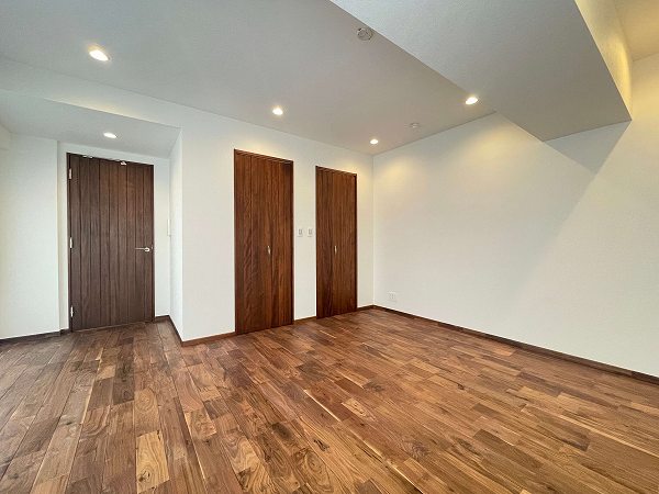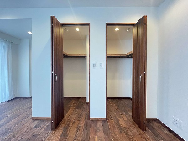約10.3帖の洋室は、“広さ”と“収納力”のバランスが際立つ一室。WICを2つ備えることで、2人分の生活用品を無理なく収められる設計です。ベッドを2台並べても空間に余白が生まれ、主寝室としての完成度の高さが感じられます。テラス・専用庭へ直結する動線も嬉しいですね♡
