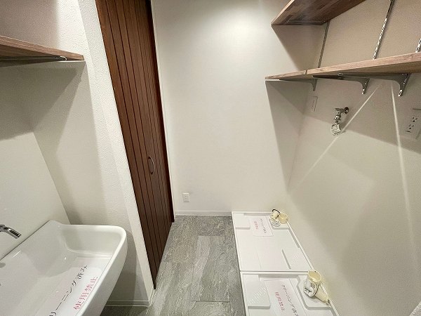 洗濯機置き場を2か所備えたユーティリティスペースは、家族での使い分けやライフスタイルの変化にも対応できる便利な設計。洗面台とリネン庫もまとまっているため、タオルやストック類をすっきり収納でき、生活感を抑えた空間づくりが叶いますね。