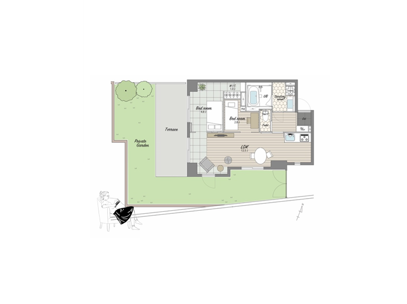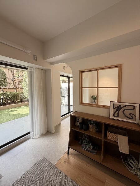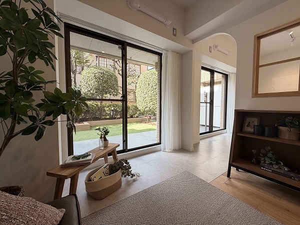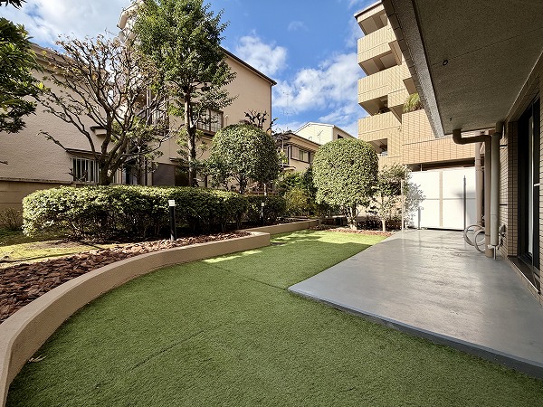 西小山駅から徒歩8分、旗の台駅も徒歩圏内に位置する『旗の台フラット』。複数路線が利用できる便利な立地で、通勤やお出かけにも快適です。ご紹介するのは1階部分の2LDK、専有面積49.88㎡のお部屋。リノベーションにより新築のように生まれ変わり、ナチュラルウッドを基調とした温もりあるデザインが心地よい空間を演出していました✿洋室はコンパクトながら在宅ワークや書斎として活用しやすい造り。細部までこだわりを感じる設備やデザインが、暮らしをより快適で豊かなものにしてくれそうです。そして何より、このお部屋の最大の魅力は16.32㎡の専用庭と13.00㎡のテラス✿青々とした芝生が広がる庭は、アウトドアリビングとして自由に使える贅沢なスペースです。ぜひ、写真では伝えきれない開放感と雰囲気を現地で体感してください。 ライター:hana【25L01】