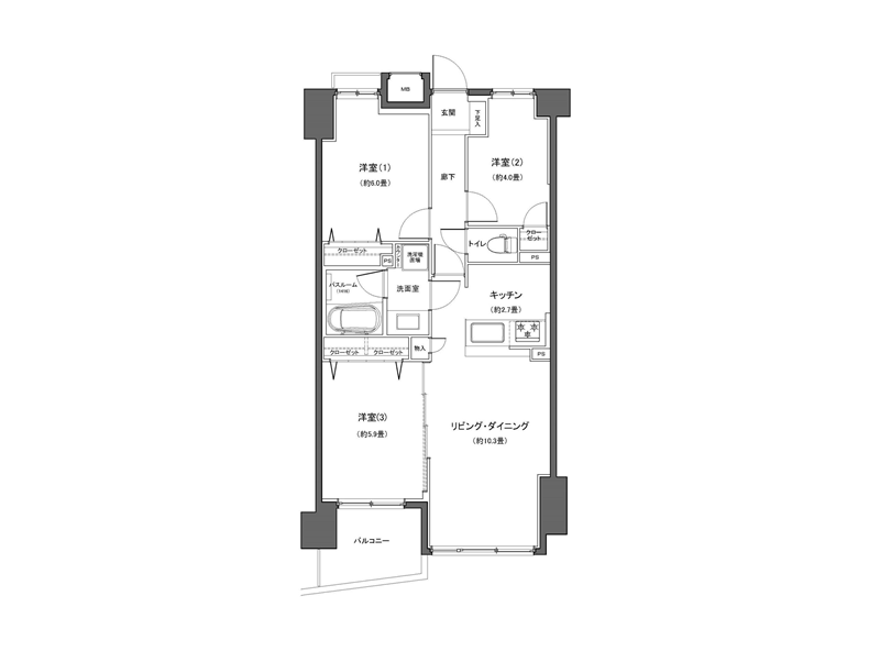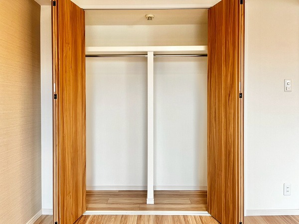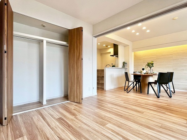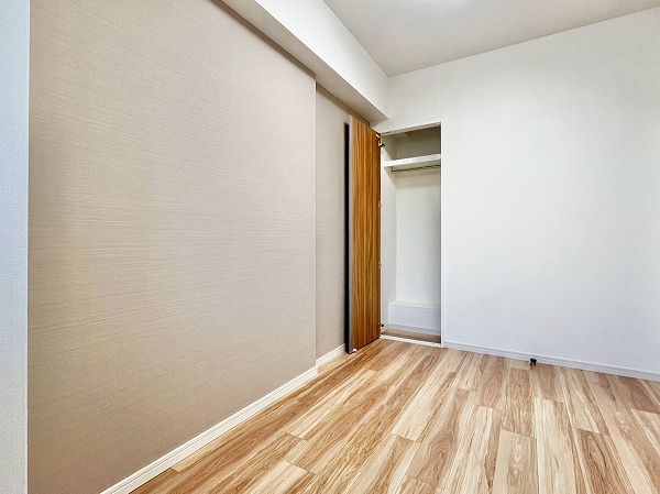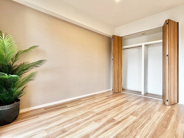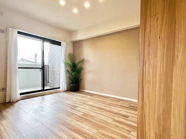 リビングダイニングキッチンに隣接した洋室は寝室としてもお使いいただけますが、引き戸を開け放ってメインルームの一部のような使い方をすることも可能です。クローゼットが付いており、お洋服はもちろんのことシーズンアイテムを収納しておくのにもぴったり。備え付けのバルコニーからは心地の良い風が吹き込み、清潔な住まいを保ってくれそうです。