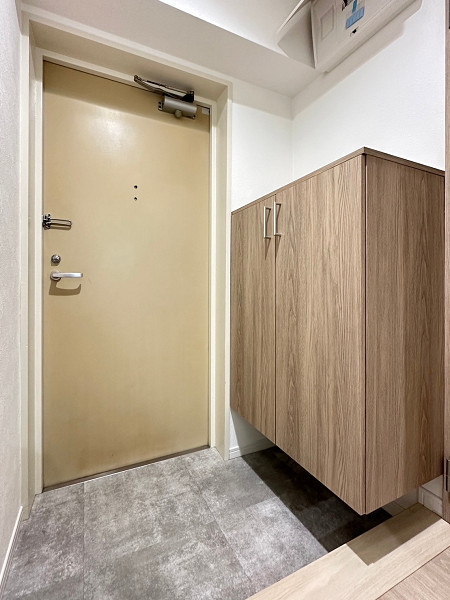 独立したエントランスホールはなく、アプローチを進んで右側に管理人室とエレベーターがありました。上階へは外階段もご利用いただけます。
