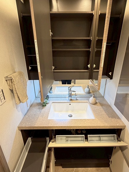 バスルームは、追焚き機能付きオートバスと浴室換気乾燥機を備えた、使い勝手の良い仕様です。天候や時間帯を問わず洗濯物の乾燥に対応でき、日常の家事負担を軽減。ゆったりとした浴槽で一日の疲れを癒やせます♡