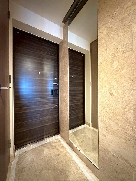ホテルライクな共用ロビー。管理人室もありました。隅々までピカピカに保たれていて、管理体制の良さが伺えますね。地下には駐輪場も備わっています。