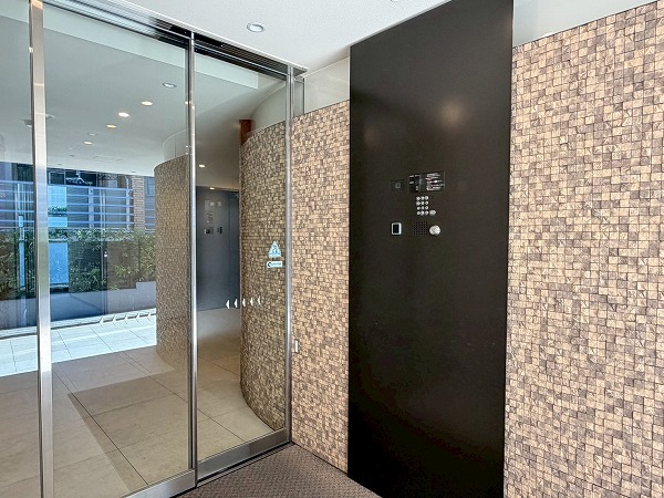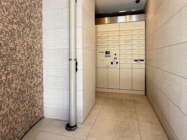 エントランスにもスロープが備わっていました。オートロック完備でセキュリティ対策も万全。不在時の荷物の受け取りがスムーズにできる、宅配ボックスもありました。