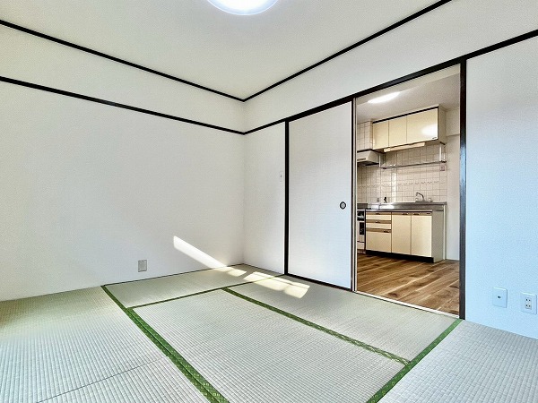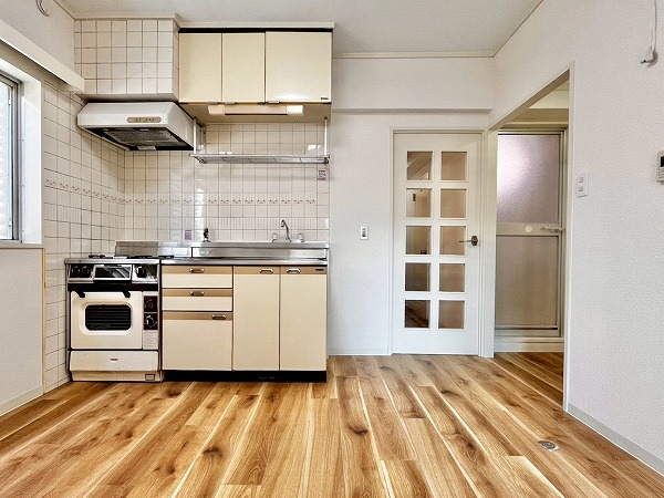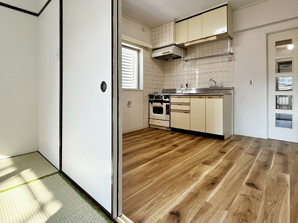 東急大井町線等々力駅から徒歩15分、高貴な雰囲気漂う等々力の住宅街を背に、駒沢公園通り沿いに建つ『エスカイア等々力』。2階に位置する2DKのお部屋はダイニングキッチンが西向きに面しており、ホワイト×ブラウンをテーマとしたレトロさが魅力。キッチンのタイルや調度品・棚などは映画に出てくるような昔ながらの台所を思い出させ、どこか懐かしい気持ちになります。なんといっても目を引くのはダイニングキッチンに隣接する畳のお部屋。和室の付いたお部屋は最近では珍しいのではないでしょうか。玄関を開けた瞬間からい草の爽やかな香りが漂い、心の底から落ち着きを感じられるお部屋になっていましたよ。和室から出ることのできるバルコニーは大通に面しておらず、落ち着いた住宅街が広がっていました◎押し入れや洗濯機置き場の上部、トイレ上部には収納が設けられ、痒い所に手が届く造りになっていました。和室と洋室の使い方はあなた次第、生活スタイルに合わせた家具を買いそろえ、快適な暮らしを送ってみませんか。内見のお問い合わせ、お待ちしております◎ ライター:yurika【26A17】