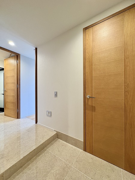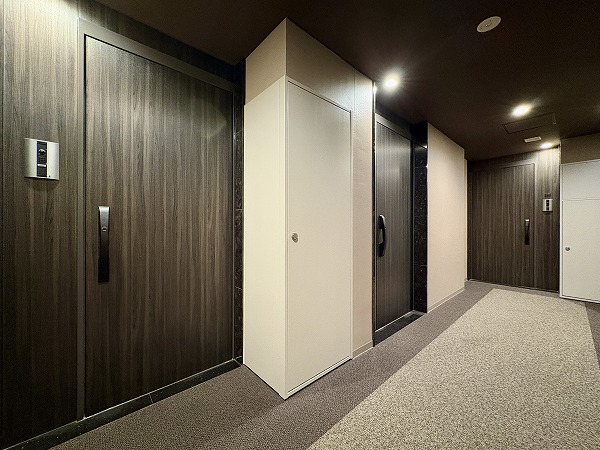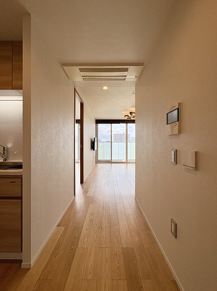ハンズフリーで出入りできるダブルオートロックシステムを完備✦安全&スムーズに移動できますね。共用廊下はホテルライクな内廊下設計のため、プライバシー面も万全です。