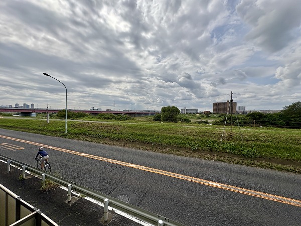 アプローチは多摩川と反対側の道路に面しています。どなたでも移動しやすいフラットな構造。