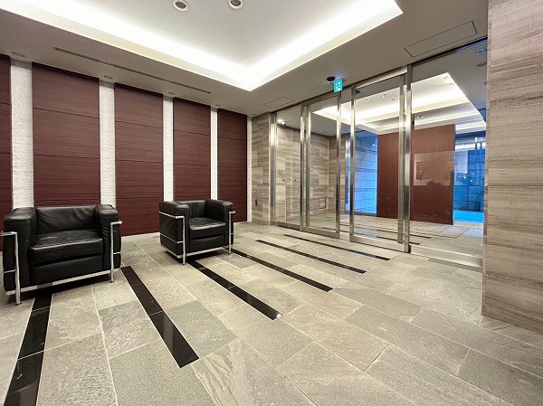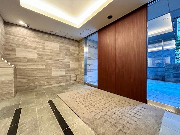 自動ドアの先に広がるエントランスは、折り上げ天井とコーブ照明が開放感をプラスしています。色合いが統一されていて、上品かつ落ち着いた雰囲気が漂っていますよ。タッチキー式のオートロックや管理人室、防犯カメラを完備。