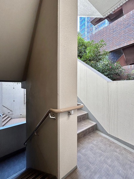 石の質感が高級感を醸し出すアプローチを進みましょう。しっかりと手入れされた植栽が、日々の暮らしに癒しをもたらしてくれますよ。フラットな造りになっていて、ベビーカーや車いすをご利用の方でも行き来がしやすいのが特徴。大きなキャノピーがあるので、ゆっくり雨具や日傘の支度を行えますね。