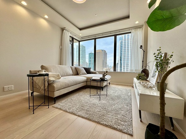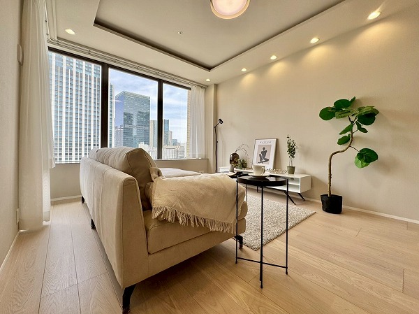 メインルームには、虎ノ門の街を一望できる大きな窓が✧L字にレイアウトされたパノラマビューの2面採光で、明るく開放的な空間を演出してくれています。