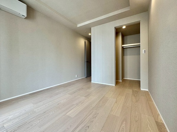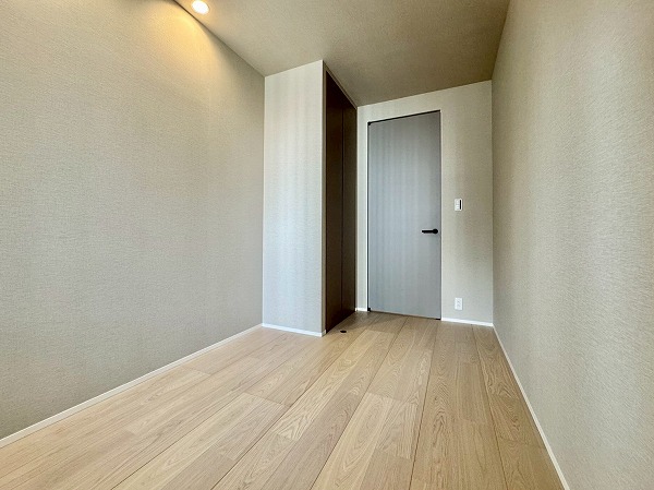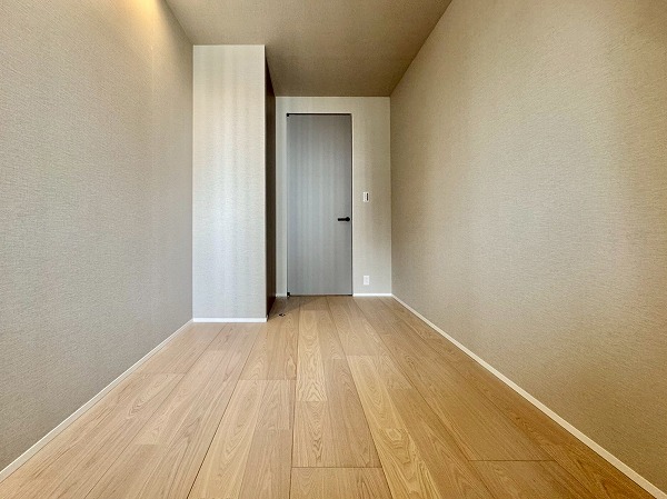 2部屋の洋室はどちらも室内廊下に面しており、リビングダイニングと同様の南東向き。ウォークインクローゼットが付いている方の洋室は約8.5帖で、ダブルベッドも問題なく設置可能です。窓際にベッドを置けば、明るい朝日&都会らしい景色とともに1日をスタートできるのではないでしょうか。