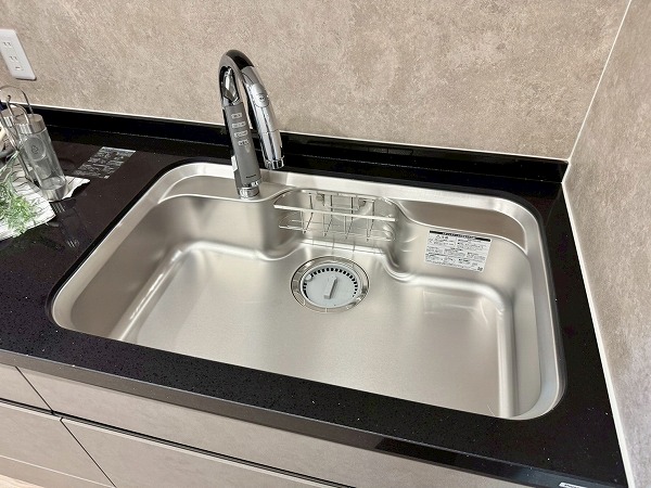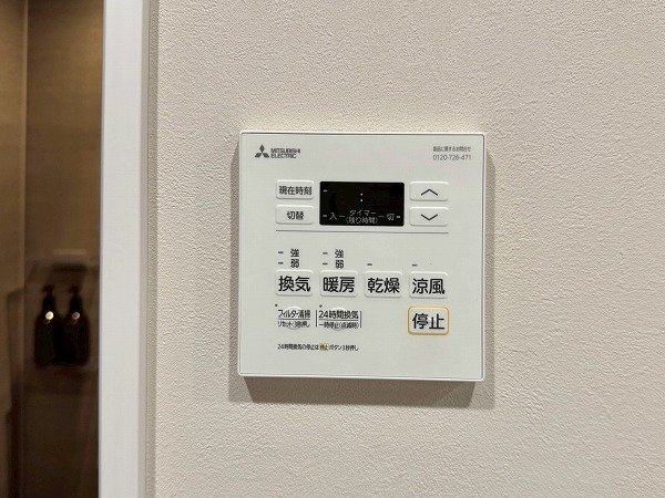 ブラックタイルがアクセントのバスルームは質感にこだわり空間を一層上質に引き立てています。浴室乾燥機を備え雨の日の洗濯物はもちろん、乾燥・暖房などの多機能により清潔なバスルームを維持しやすいのも大きな魅力◎