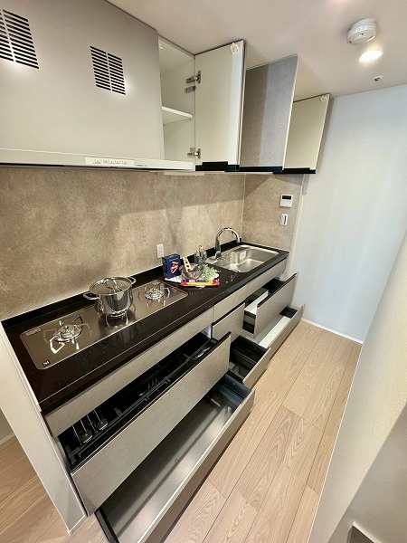 キッチンは完全個室型で、扉を閉めれば自分だけの料理空間に♪生活感を隠せる設計のため、来客時にも視線を気にせず調理や片付けに集中できます。趣味の料理を楽しみたい方にとてもおすすめです♥
