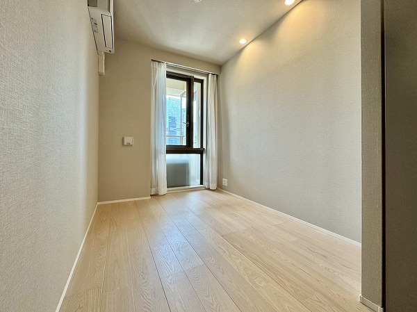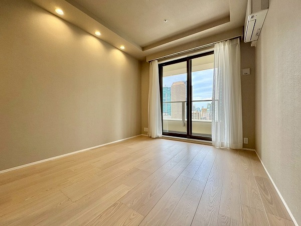 こちらは約7帖の洋室。大きなベッドも余裕をもって置ける広さなので、主寝室に最適です。バルコニーに繋がる大きな窓があり開放感に溢れています。デッドスペースの少ないレイアウトなので、インテリアの自由度が高いのも嬉しいポイント♪