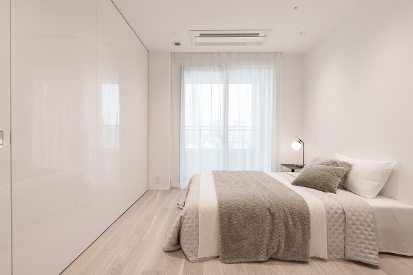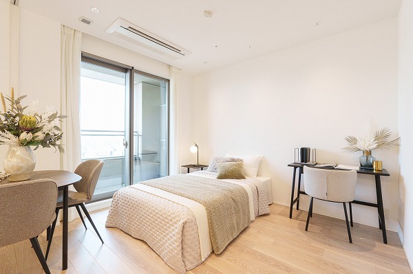 メインベッドルームにおすすめしたいのが、この約7.3帖の洋室。バルコニー側の窓からは日中の優しい光が差し込み、落ち着きのあるリラックス空間を演出します。収納もしっかり確保されているため、散らかりがちな衣類も整然と収められ、住空間をすっきりと確保可能。