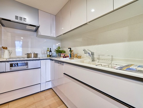 キッチンは独立性の高い造りで、煙や匂いが居室に広がりにくいのが特徴。L字型のレイアウトにより作業スペースが広く確保され、調理中の動線がスムーズに。収納も豊富で、調味料から食器類までしっかり収まり、キッチン周りをすっきり保てますよ。