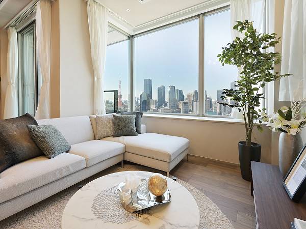 LDKと寝室からは高層ビル群と東京タワーを望むシティビューが広がり、都会らしい景色を日常に取り込むことができますよ☀窓辺にソファを設置して、景色を楽しみながらホッと一息つく時間が特別なリラックスタイムに・・・♥