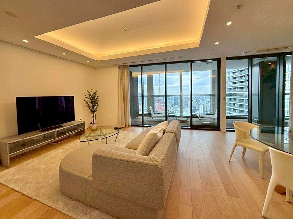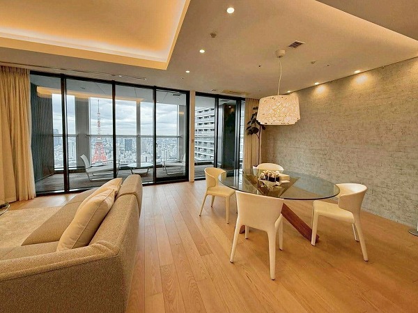 今回ご紹介するのは38階部分。エレベーターを降りた瞬間からどこか特別な空気が漂います。専有面積84.90㎡の1LDKは、一般的な2LDKに匹敵するゆとりある設計。玄関からリビングへと進むにつれ、空間の広がりに思わず息をのみました。約26帖のメインルームは、大きな家具をゆったりと配置できる伸びやかさ。リビングとダイニングをしっかり分けても余白が生まれ、ペットの飼育も可能という懐の深さも魅力です。そして窓の先に堂々と佇む「東京タワー」の姿。昼は凛とした存在感を、夜は幻想的な輝きを放ち日常の景色を特別なものへと変えてくれます✧