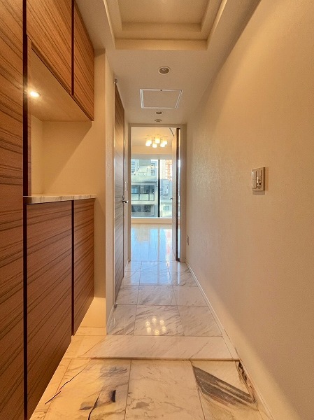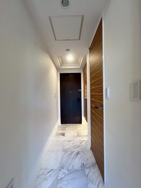 今回ご紹介するのは『シティタワー麻布十番』の7階部分に位置するお部屋。スタイリッシュな外観にホテルライクなエントランス、行き届いた共用部の空気感....。建物に1歩足を踏み入れた瞬間から上質な暮らしが想像できました。玄関扉を開けると、まず目に入るのは温もりある木目調の空間。専有面積47.88㎡の1LDKは、1人暮らしにちょうどいいサイズ感です。北東向きのため、朝はやわらかな光が差し込み室内全体が穏やかな明るさに包まれていました。ペットの飼育も可能とのことで、愛犬や愛猫とこの景色を共有できるのも魅力。
