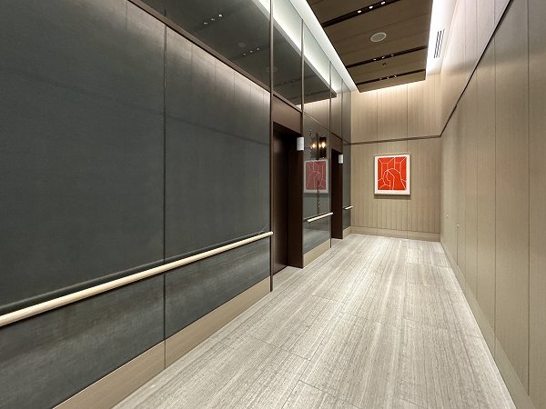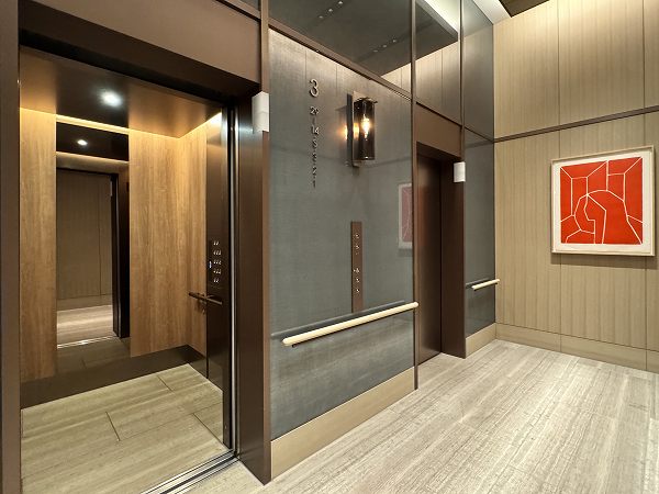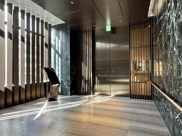エレベーターホールは階によって分かれていて、ダブルオートロックを解除して進みます。エレベーター自体も何基か設けられ、混雑緩和が期待できますね。居住フロアはホテルライクな内廊下仕様。各フロアにダストステーションがあるのも嬉しいポイントです。